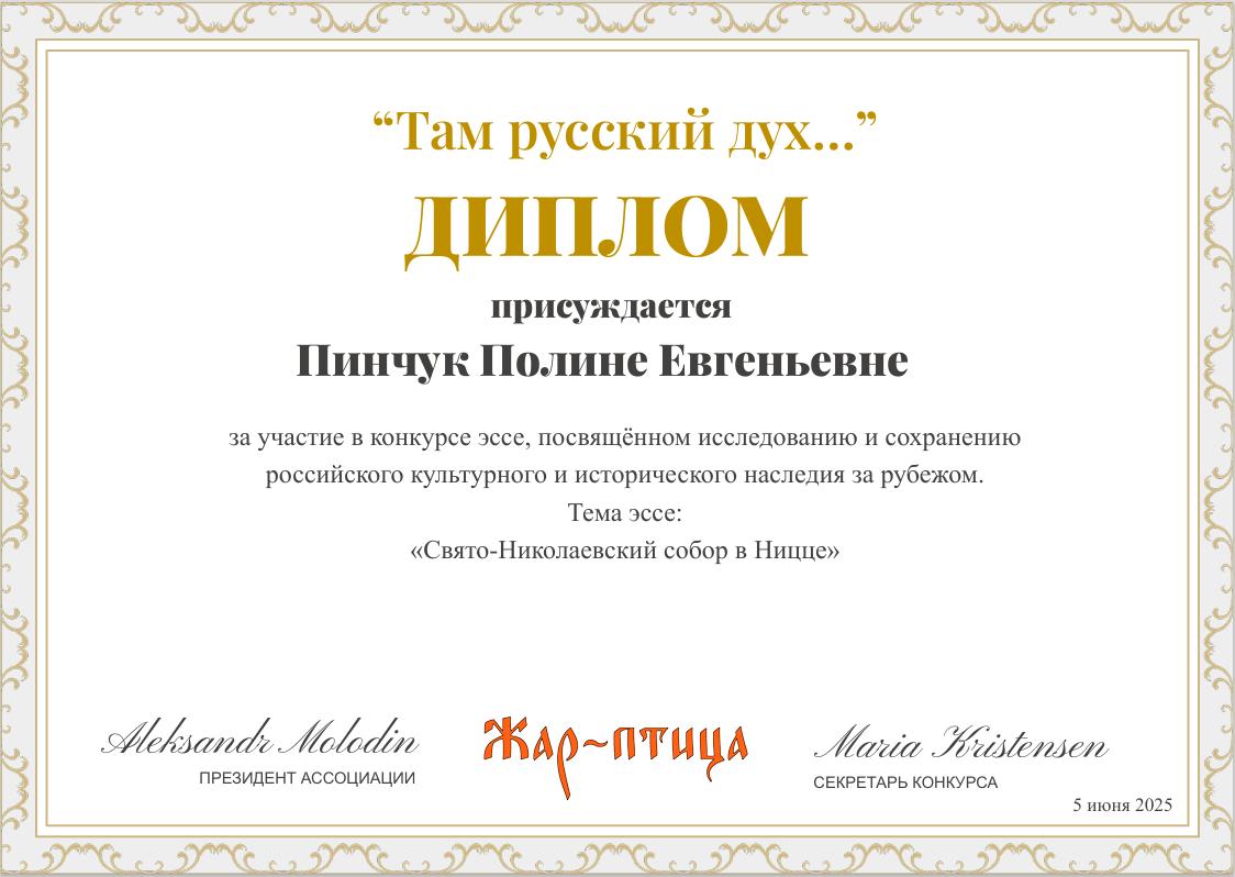 Хочу поделиться с вами одним из интересных моментов моей деятельности – участием в международном конкурсе эссе «Там русский дух…». Этот конкурс посвящен изучению и сохранению российского культурного и исторического наследия за пределами России.Моя работа, посвященная Свято-Николаевскому собору в...
